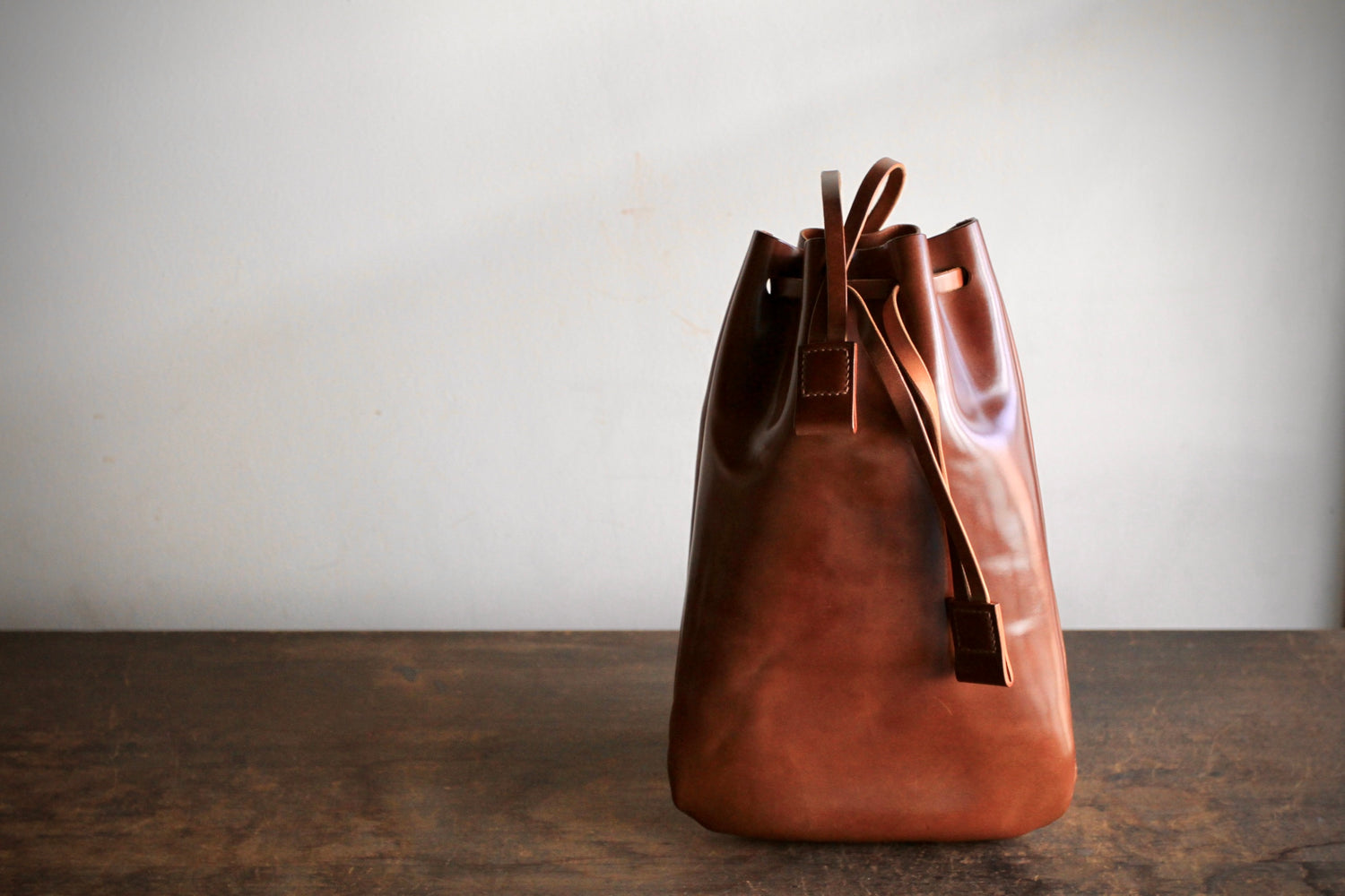 東京で、コードバンの巾着をつくる