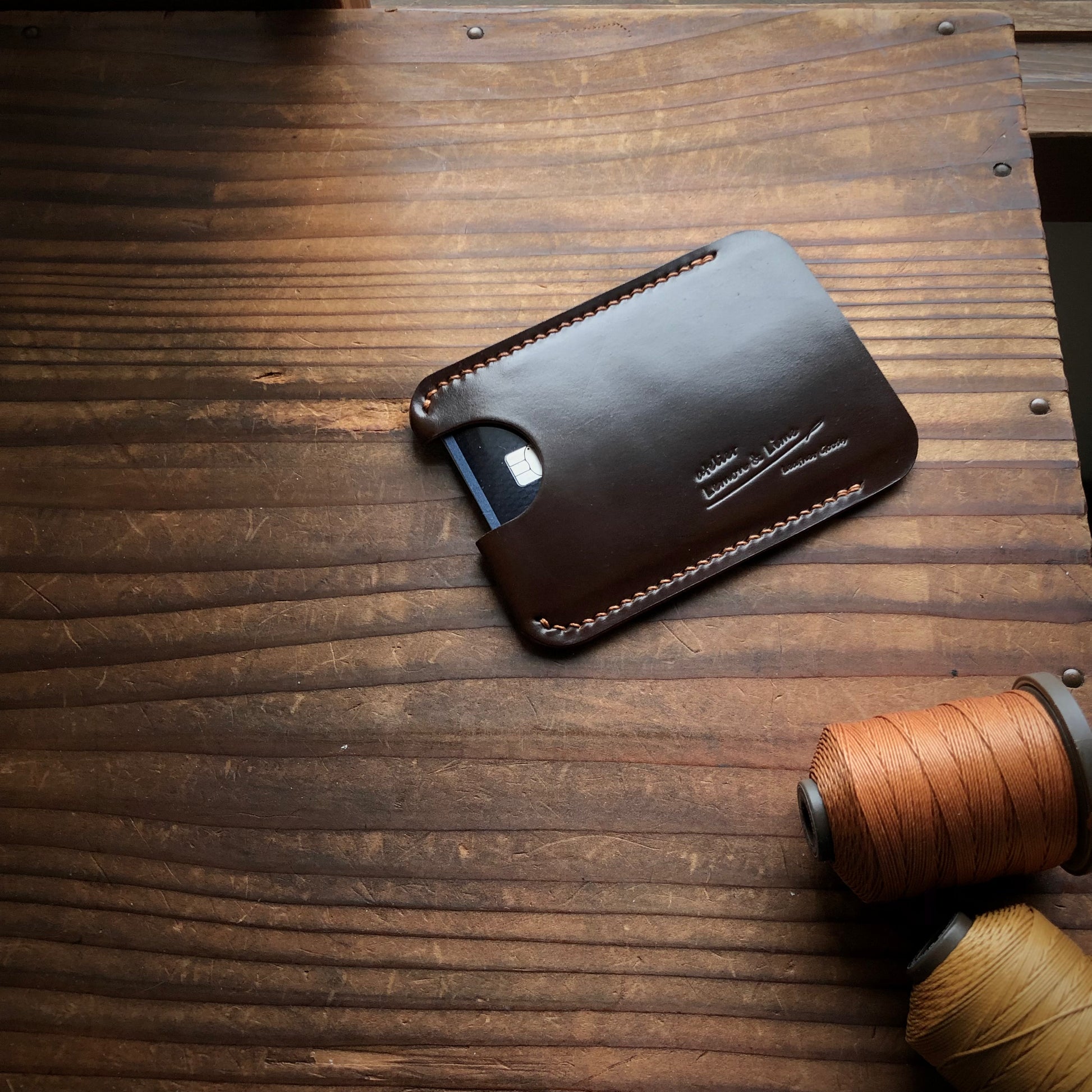 コードバンを気軽に楽しんでいただくために製作した、シンプルな1ポケットのカード入れです。カードは2枚入ります。