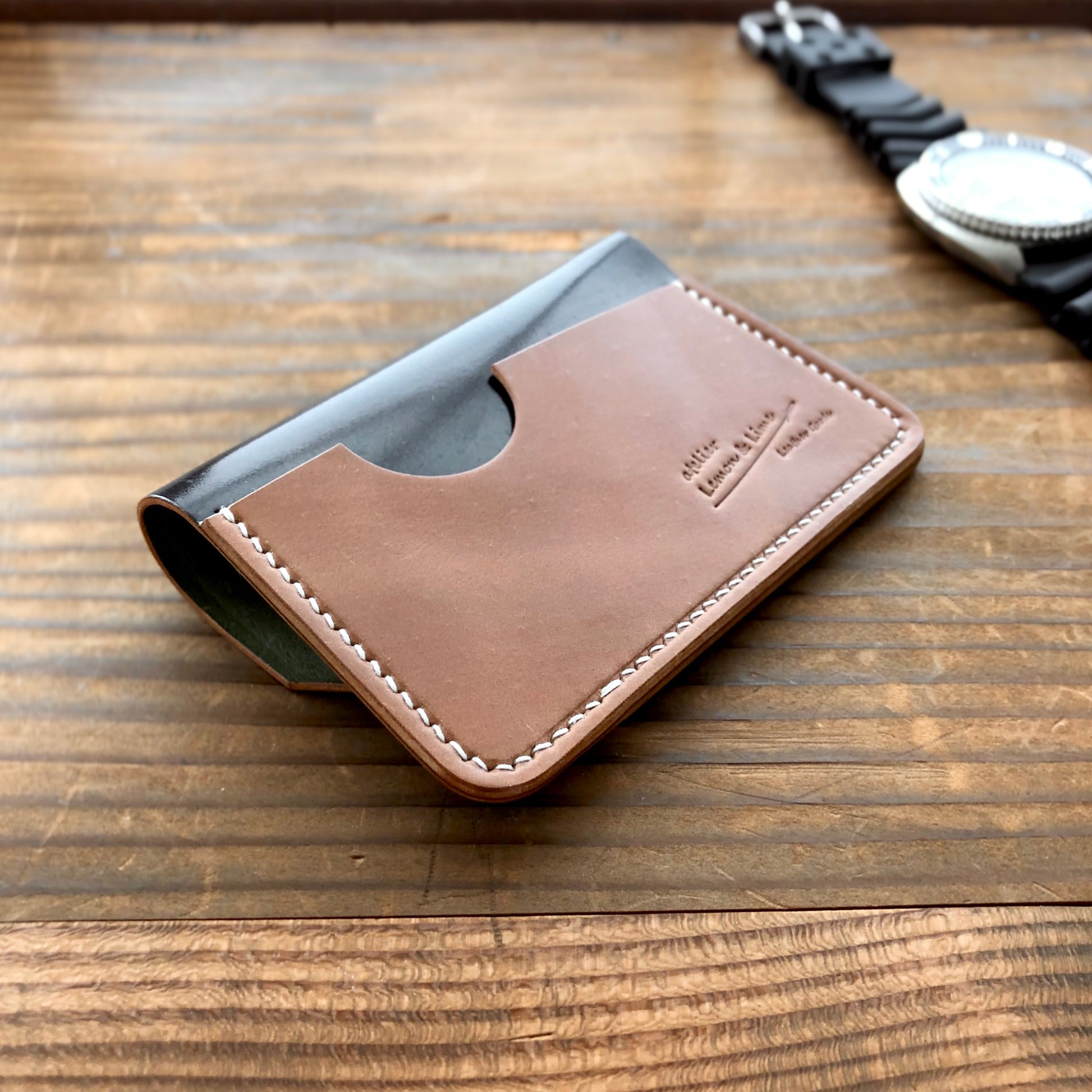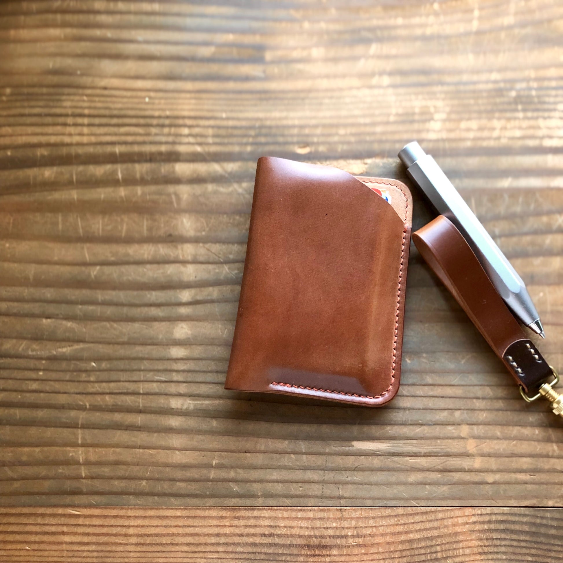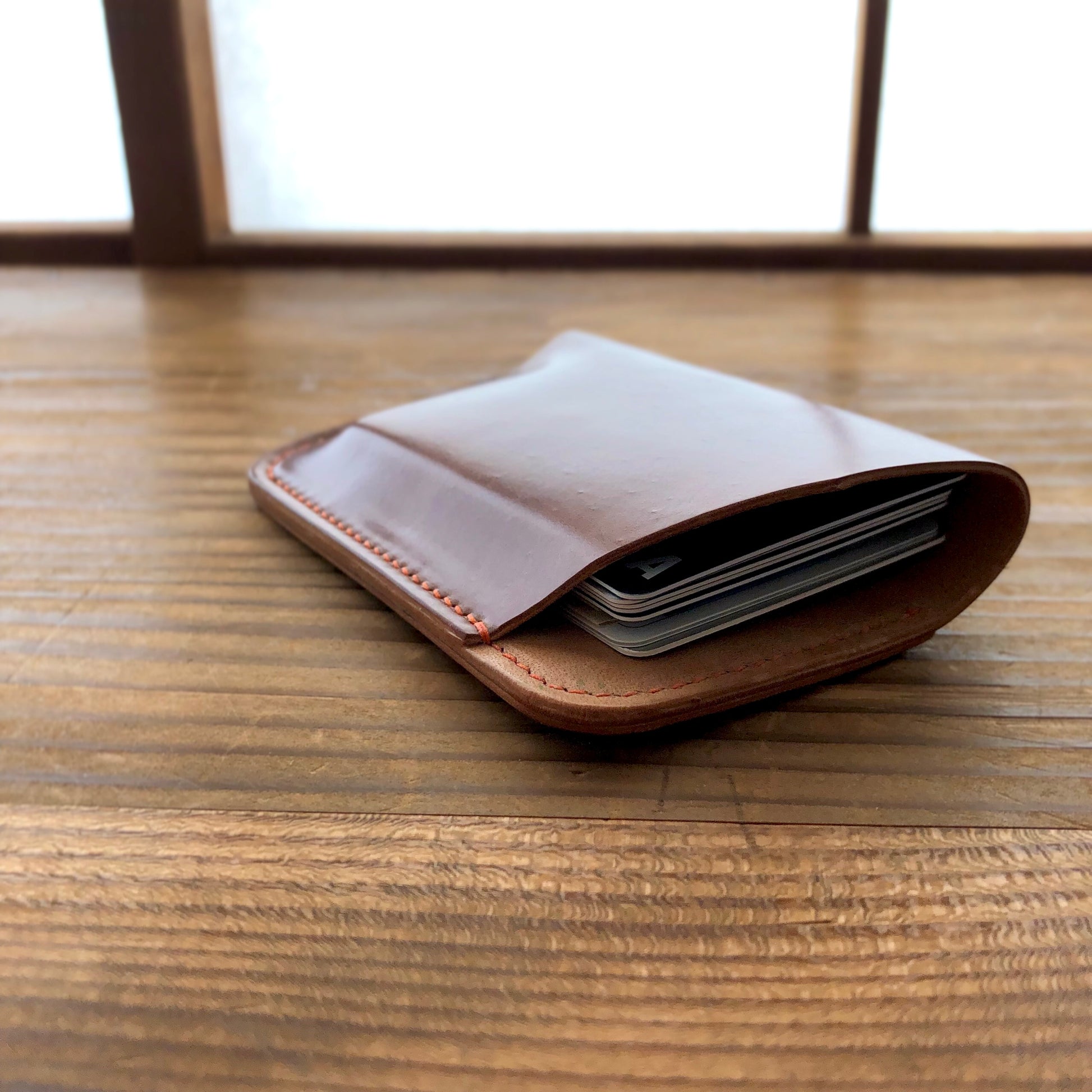 Horweenシェルコードバンで作った縦型+横型のカードウォレットです。