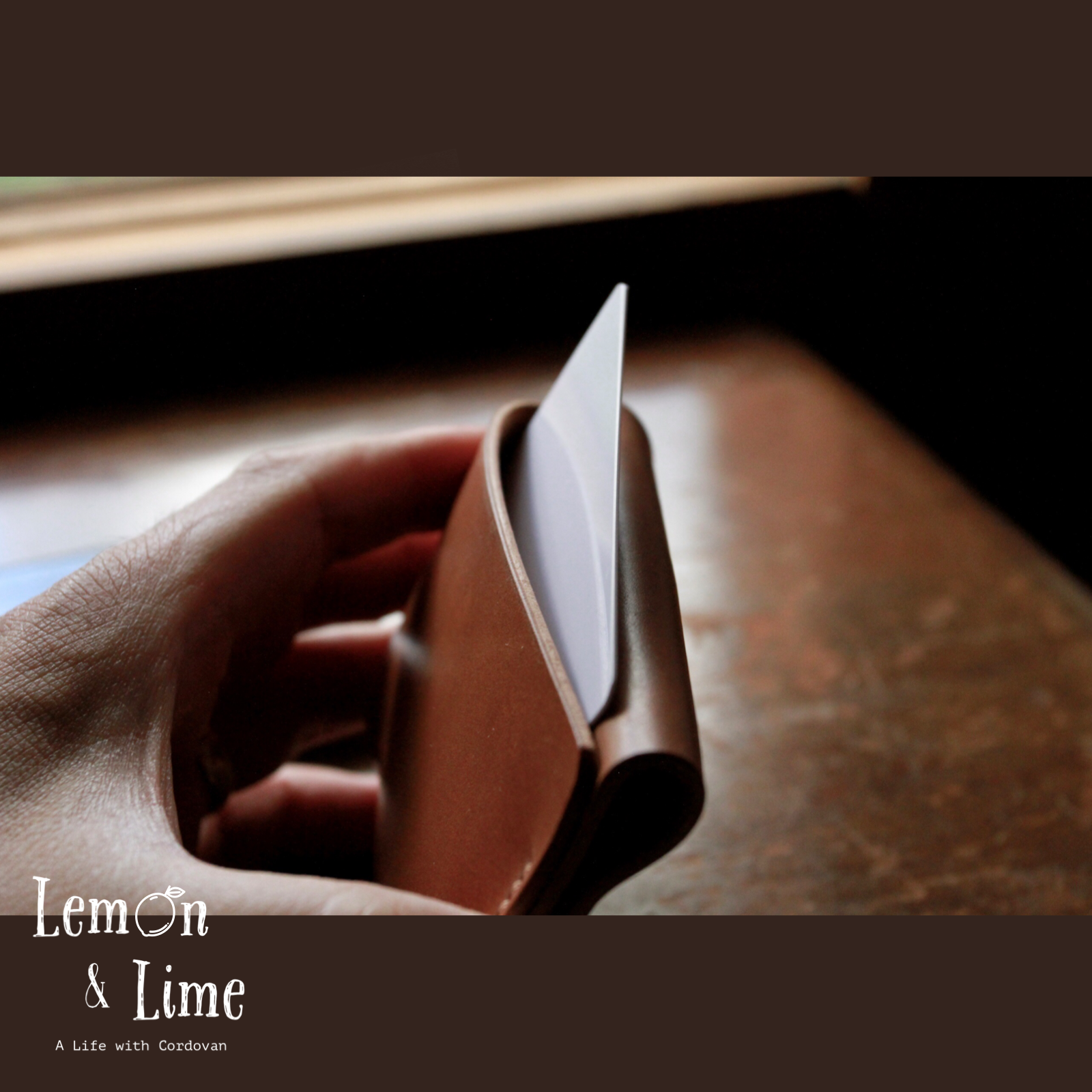 Horweenシェルコードバンで作った縦型のミニマル財布です。