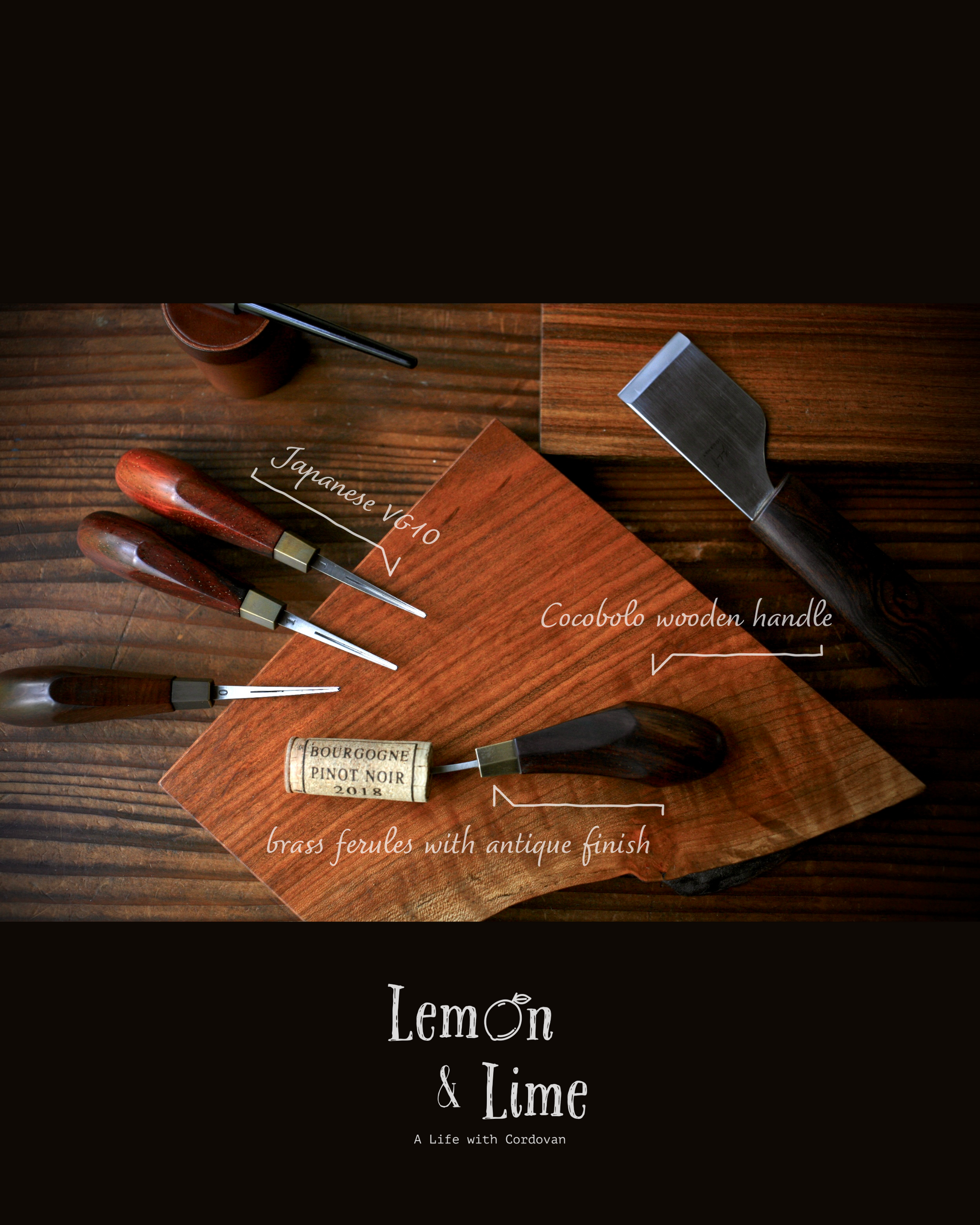 ココボロ製のハンドルと真鍮のフェルール(接続部分)は、高精度の CNC マシンで削り出され、さらに手作業で成形され、仕上げられています。