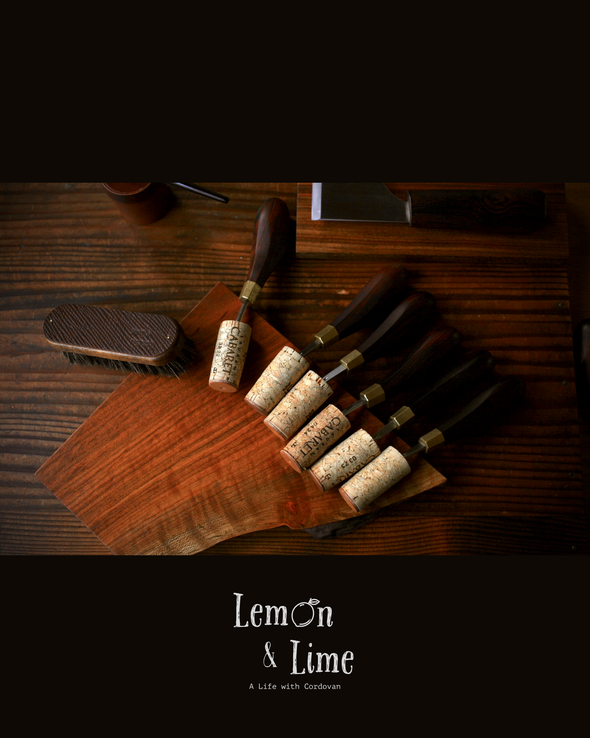 真鍮製フェルールの仕上げには、通常は細かな線状のサテン仕上げですが、今回 atelier Lemon & Lime で取り扱うヘリ落としには全て、オリジナルの「槌目仕上げ」にて製作をしてもらいました。