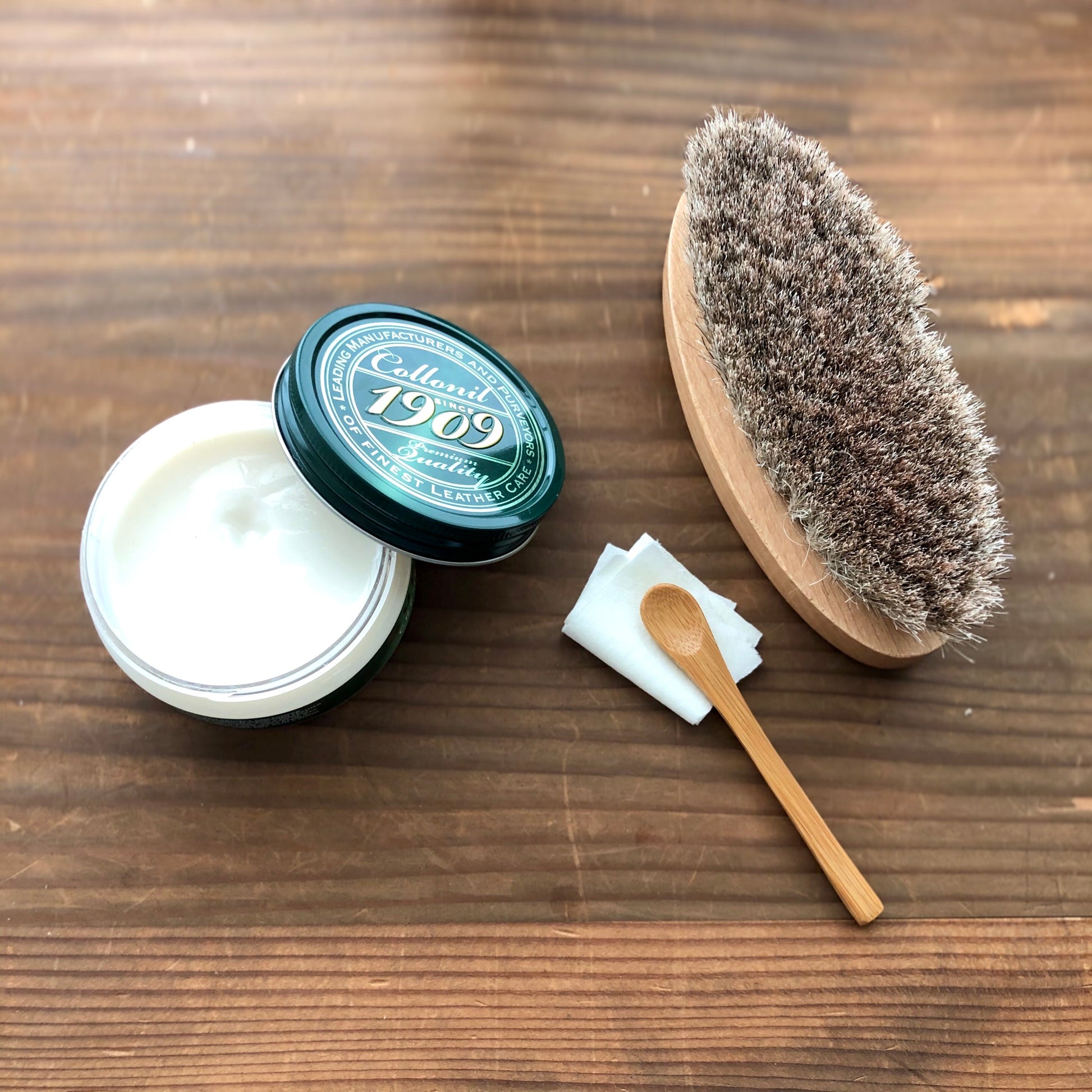 (強力な防水効果は、革の表面に対してマイナスな効果を与える可能性があります。そのためここでは、防水効果をもたらすお手入れは含めていません)