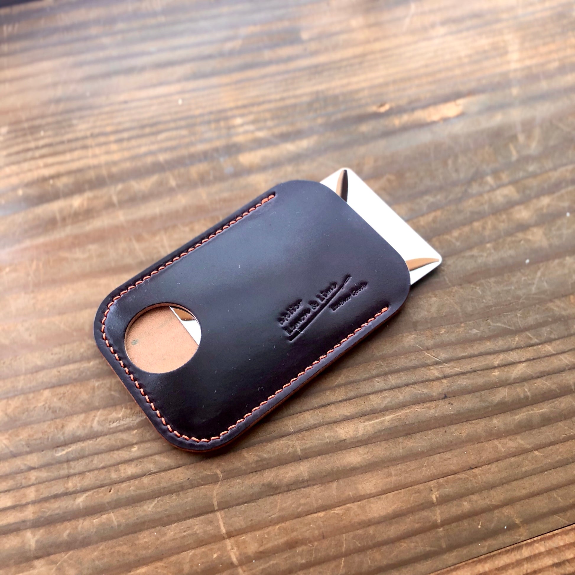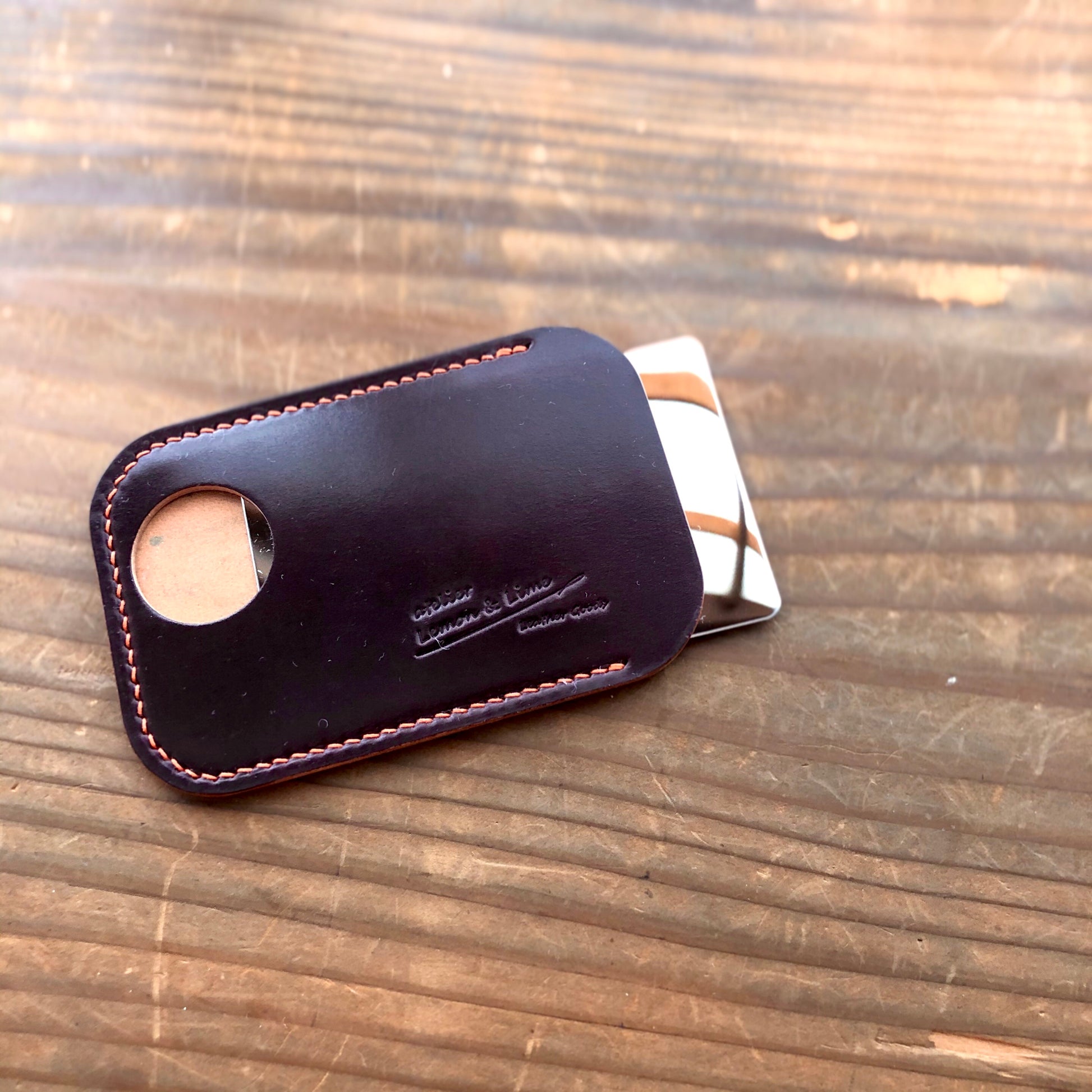 Horweenシェルコードバンで作ったカード型ミラーのケースです。