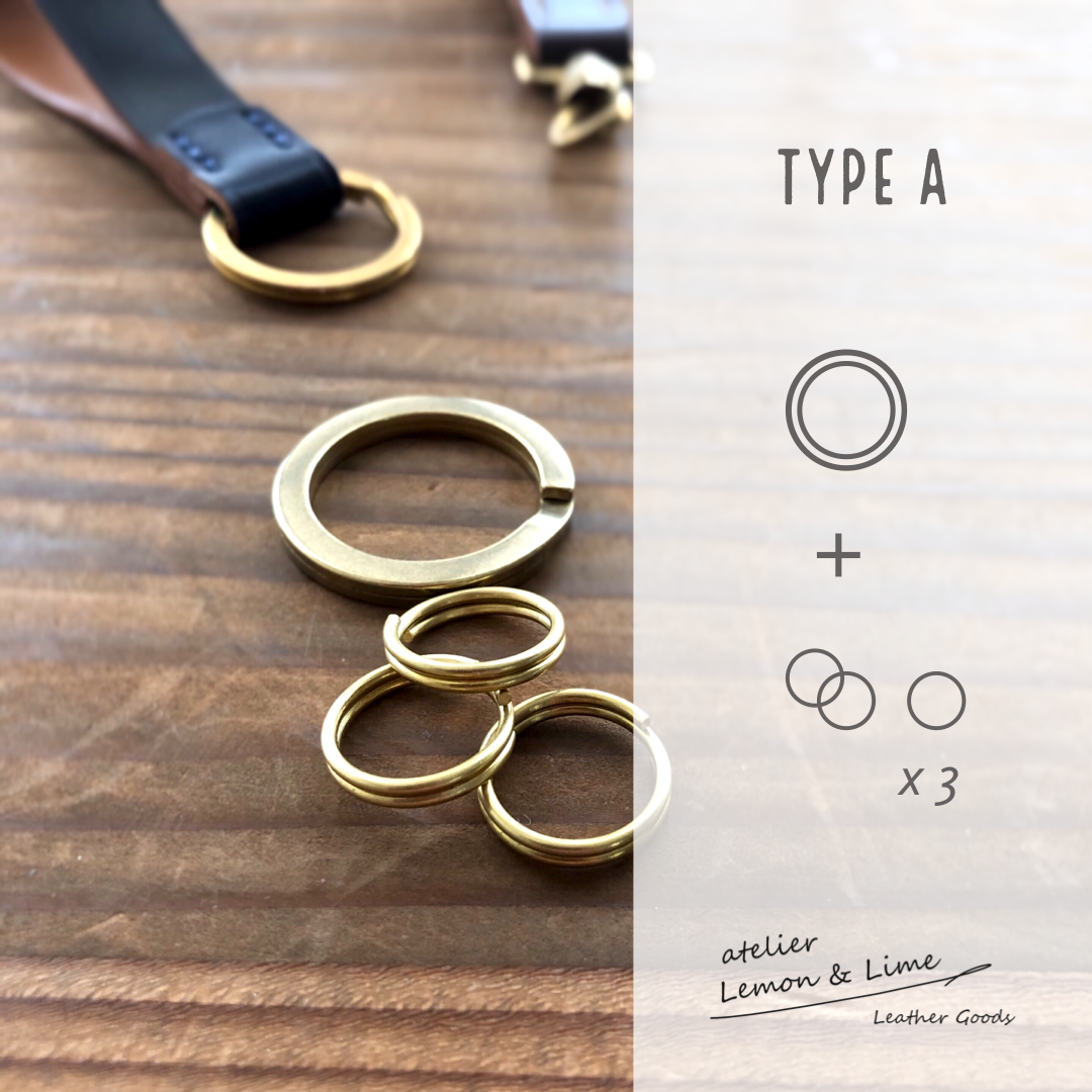| Type B | 大きな平型リング + 小ナスカン 3つ (全て真鍮製) |