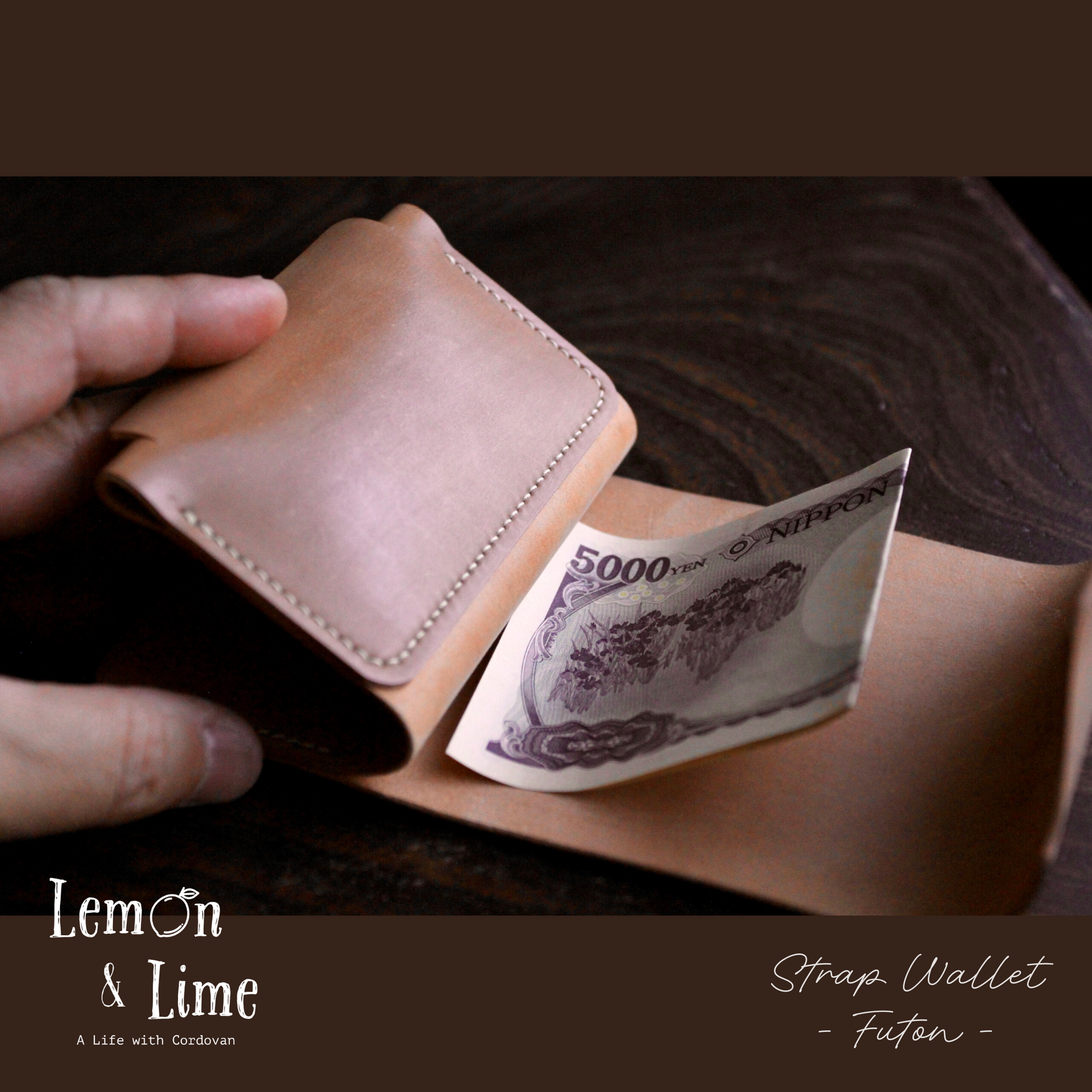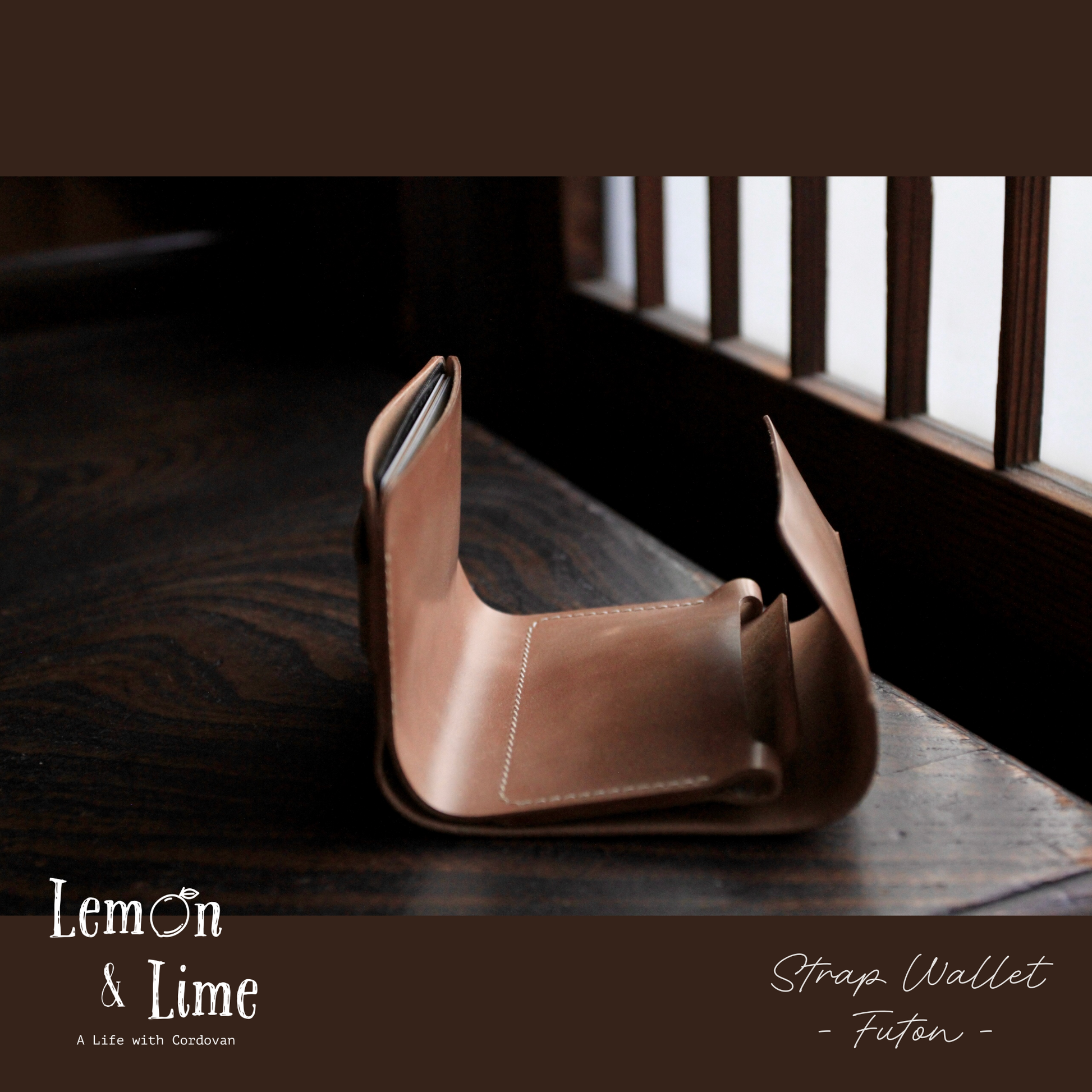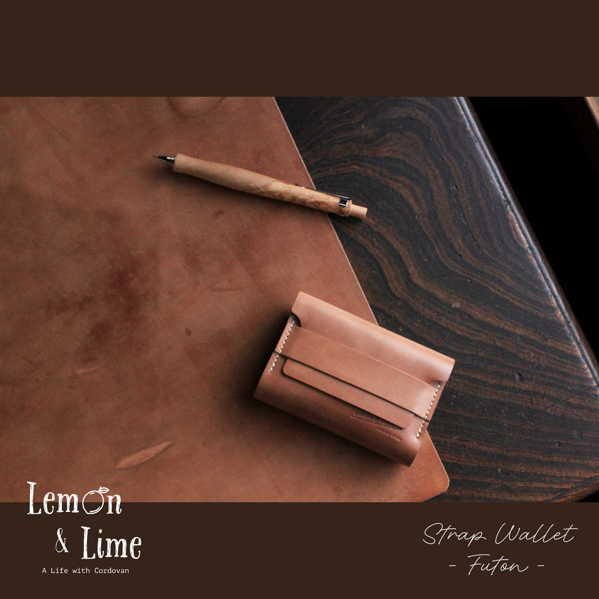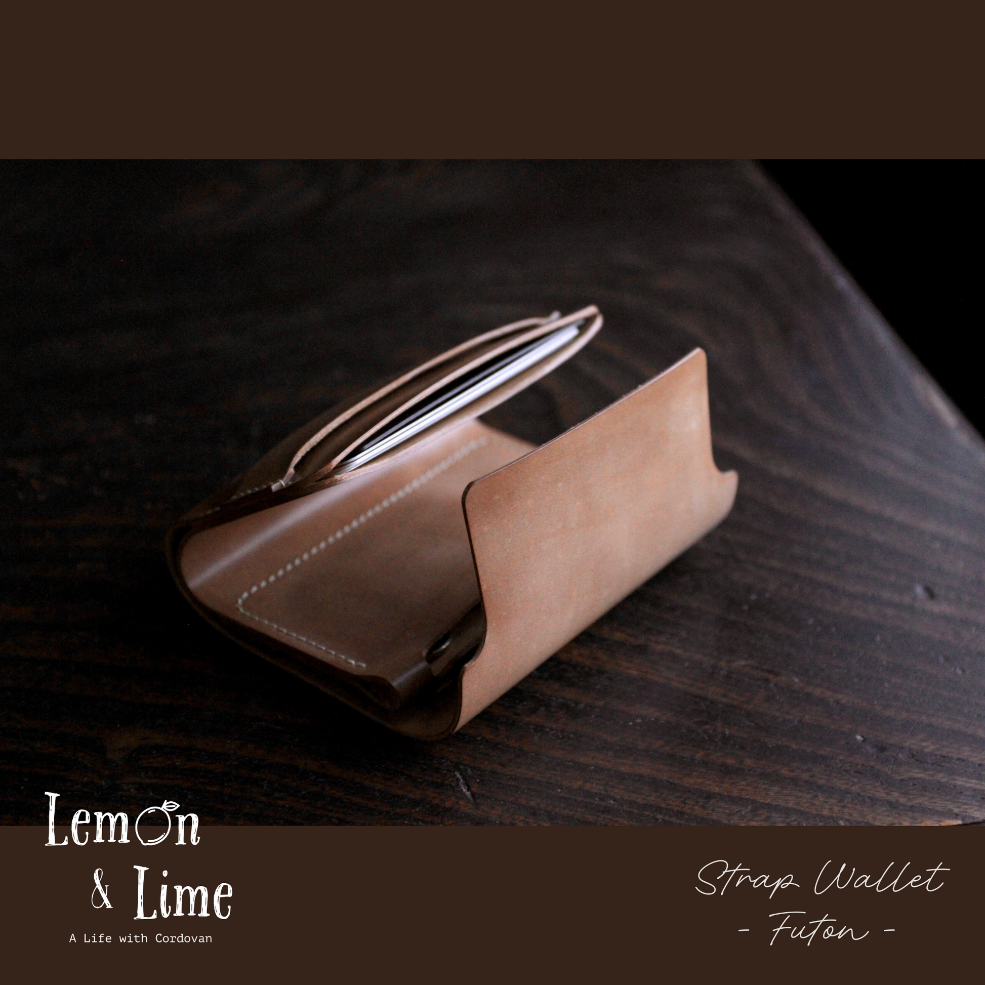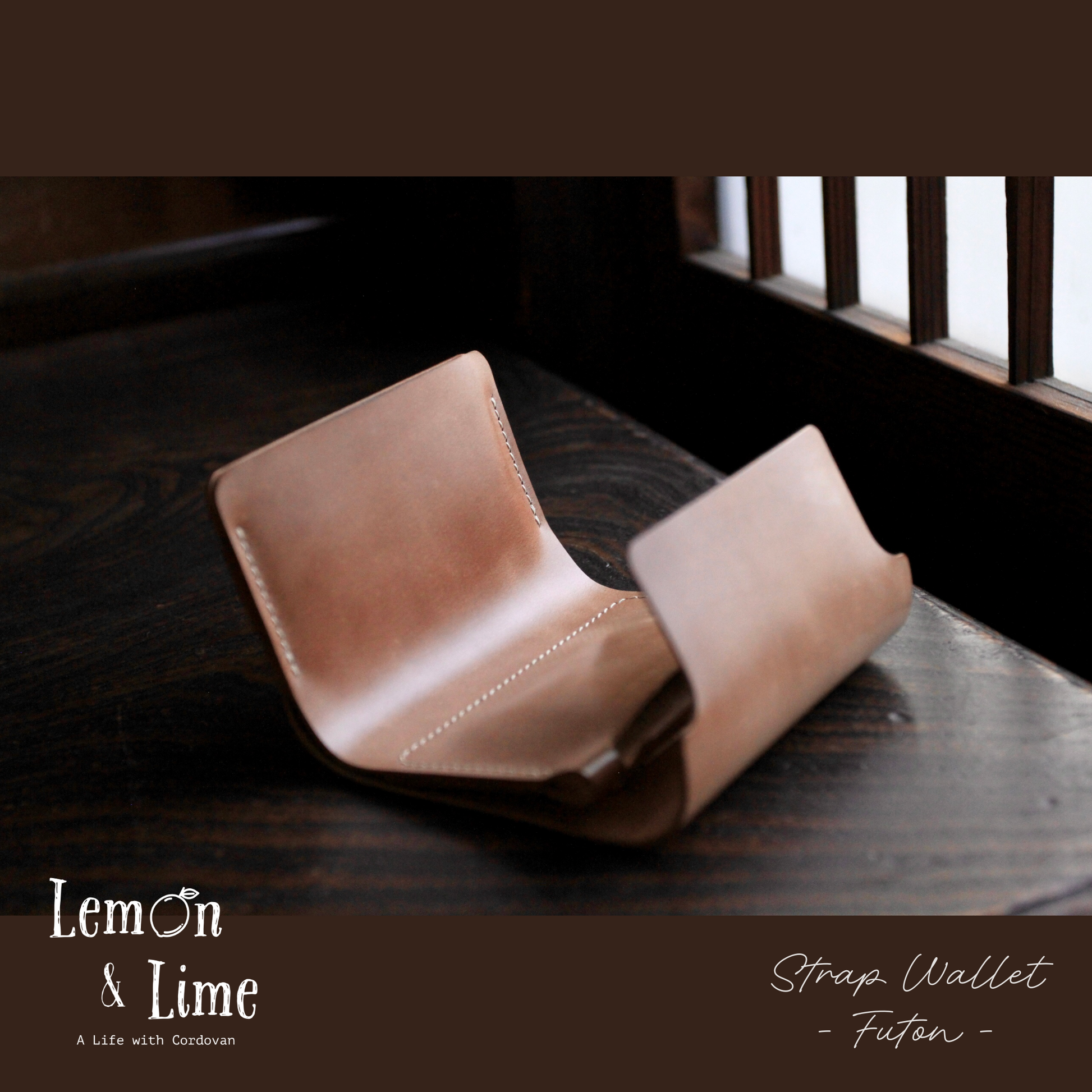 Horweenシェルコードバンで作った、フラップで留めるミニマル財布「Futon」です。