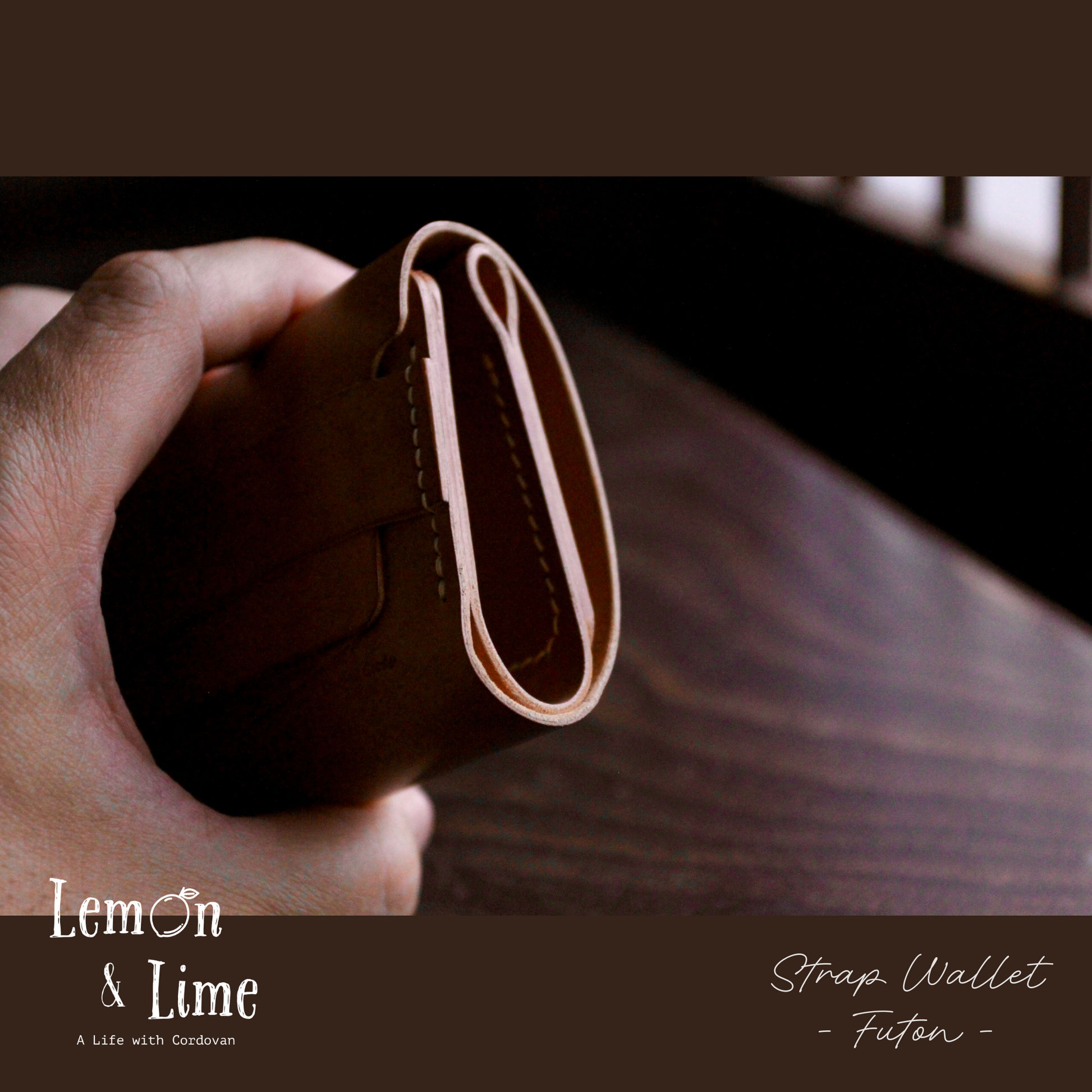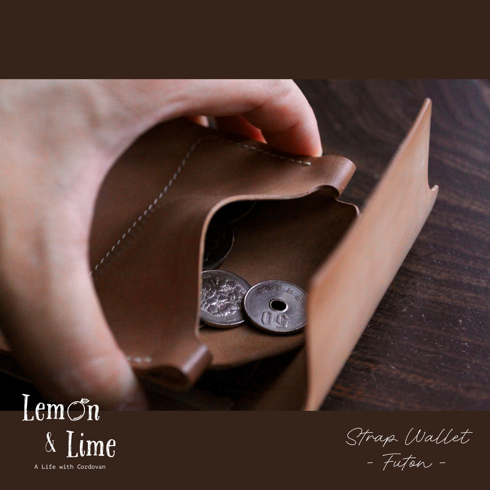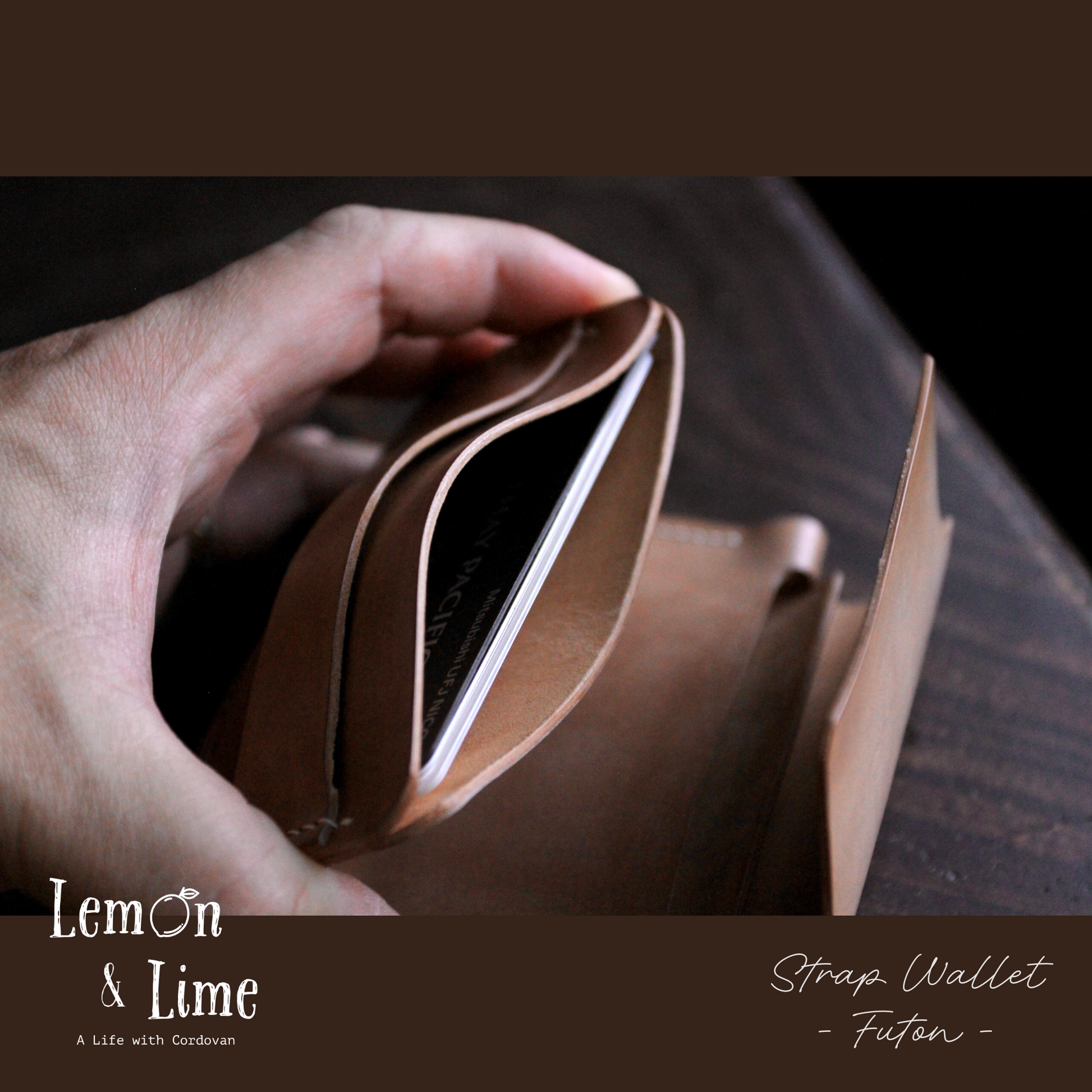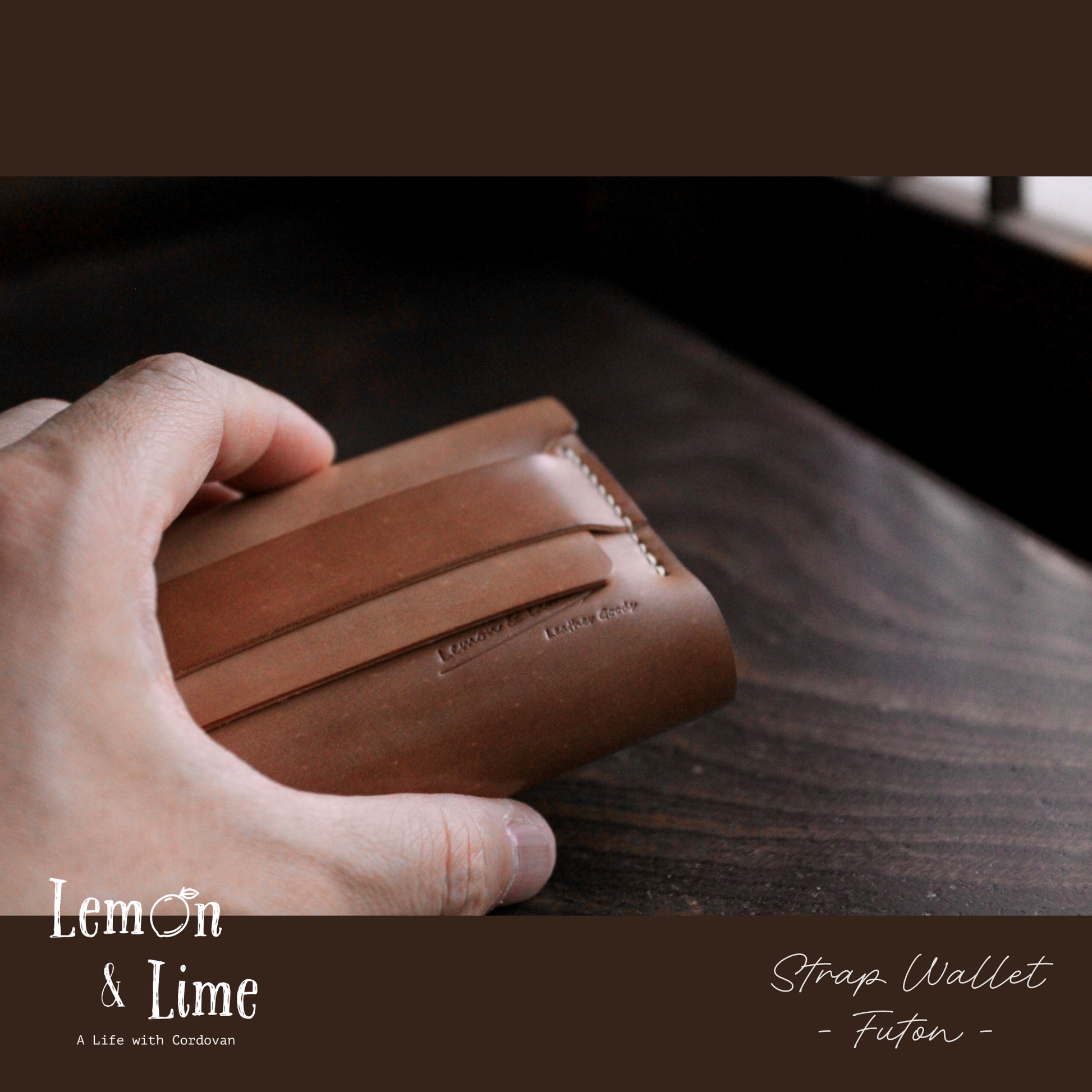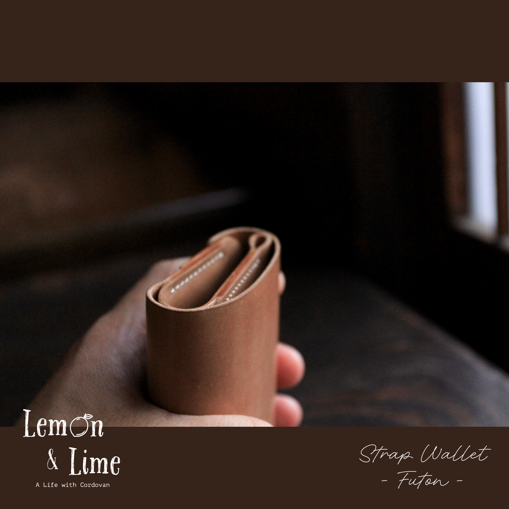 Horweenシェルコードバンで作った、フラップで留めるミニマル財布「Futon」です。
