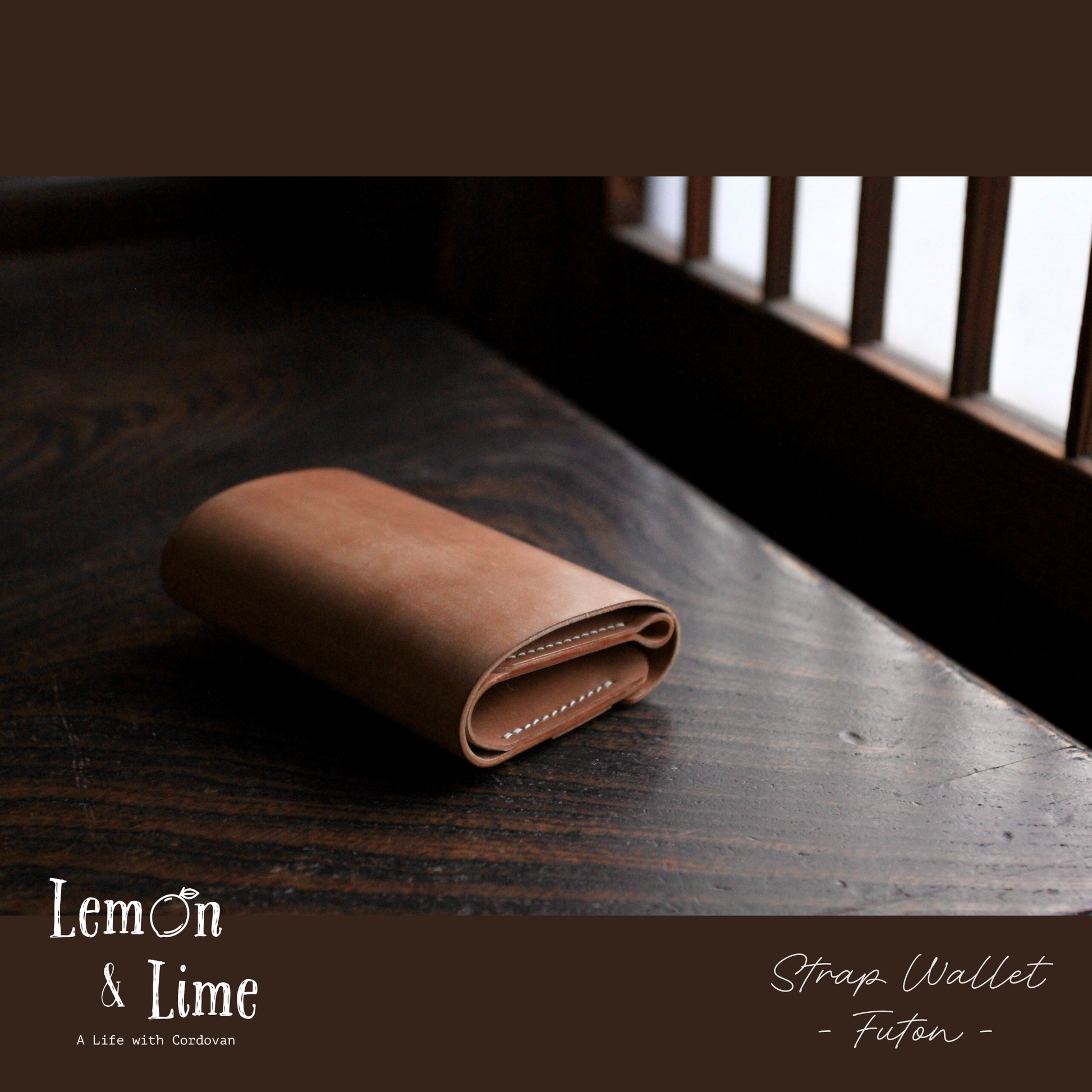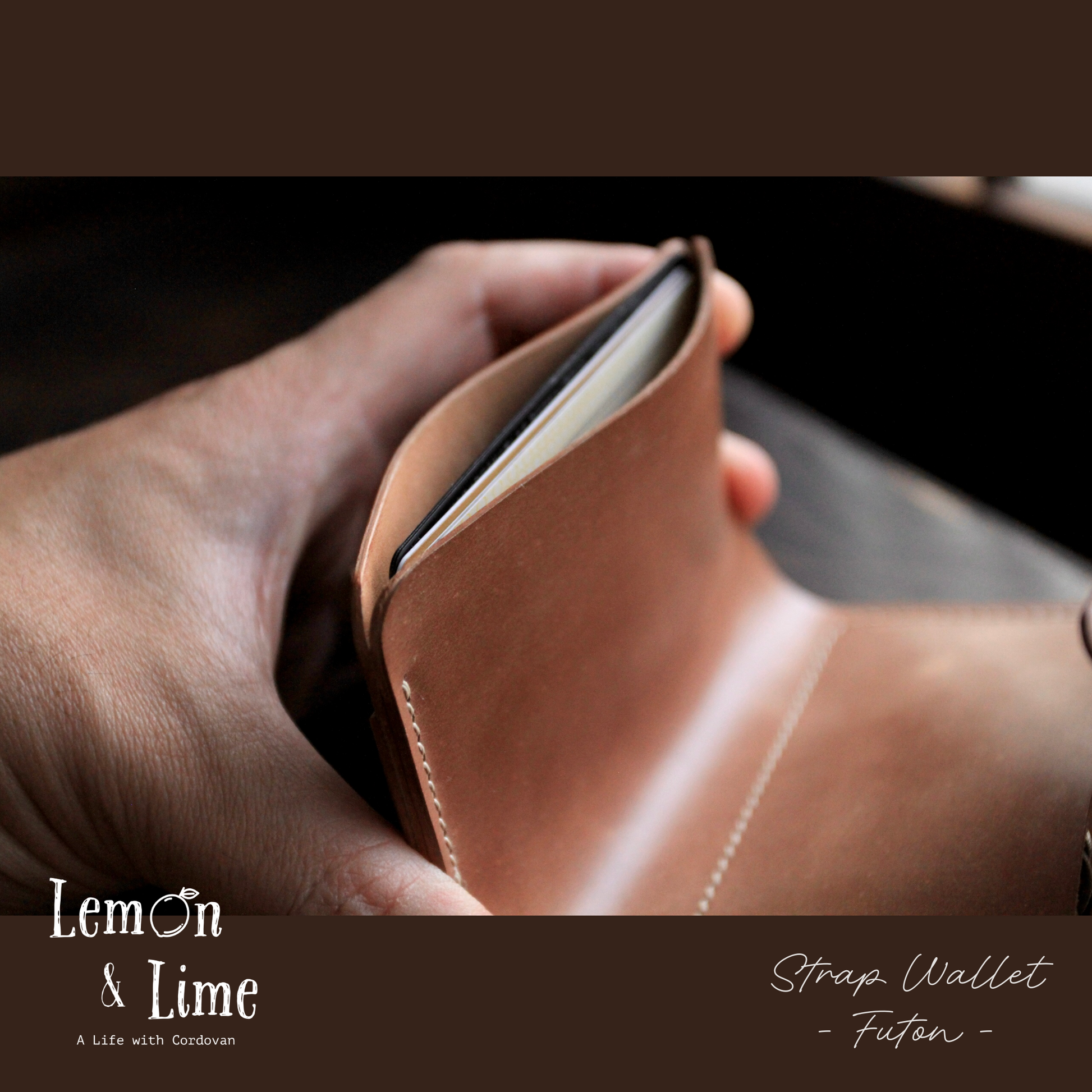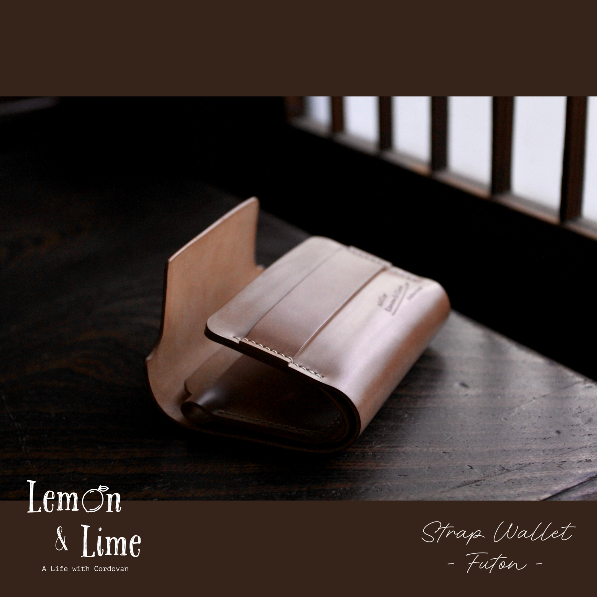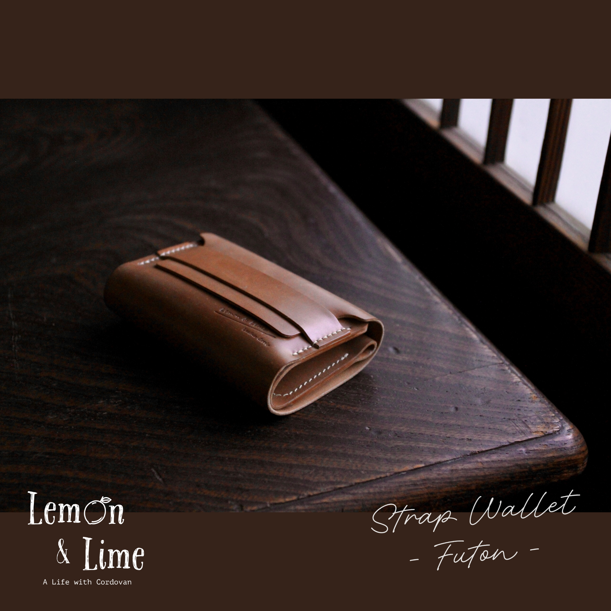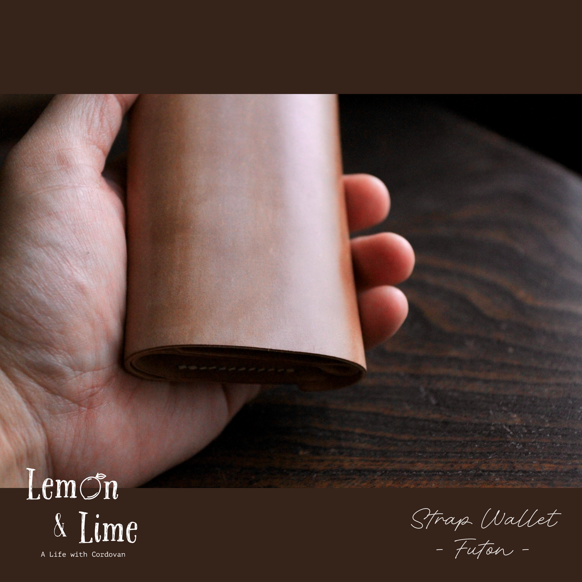 Horweenシェルコードバンで作った、フラップで留めるミニマル財布「Futon」です。