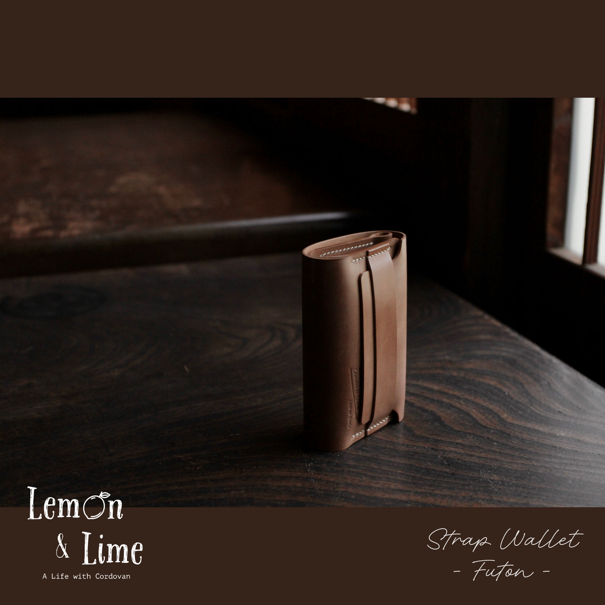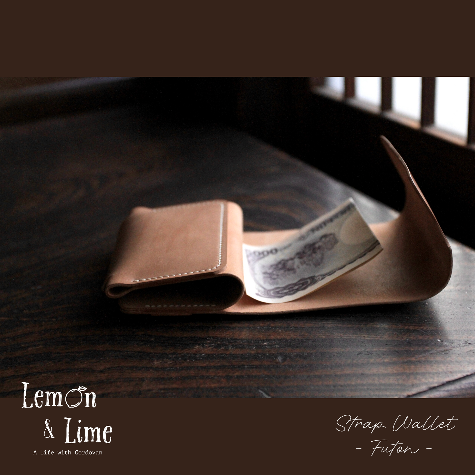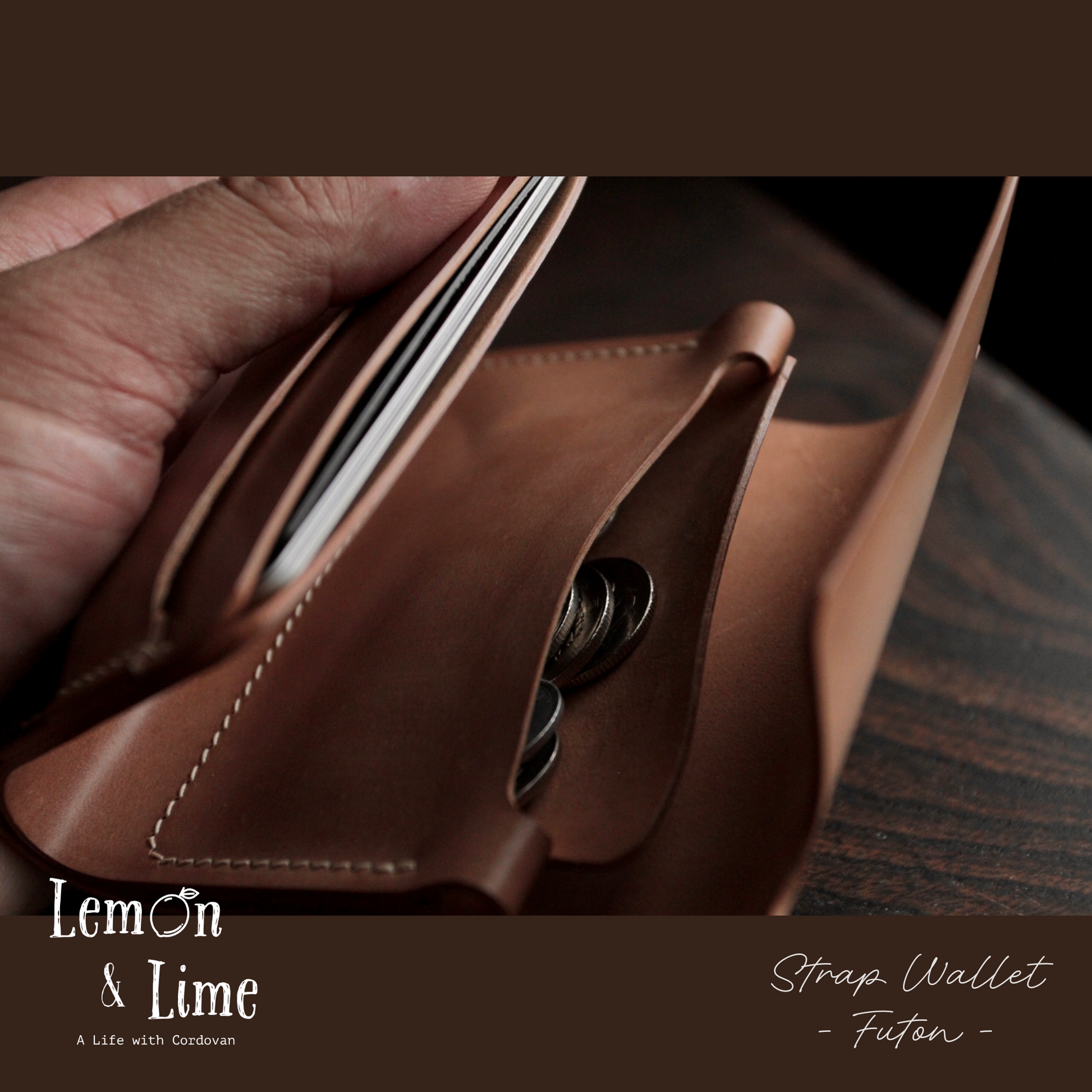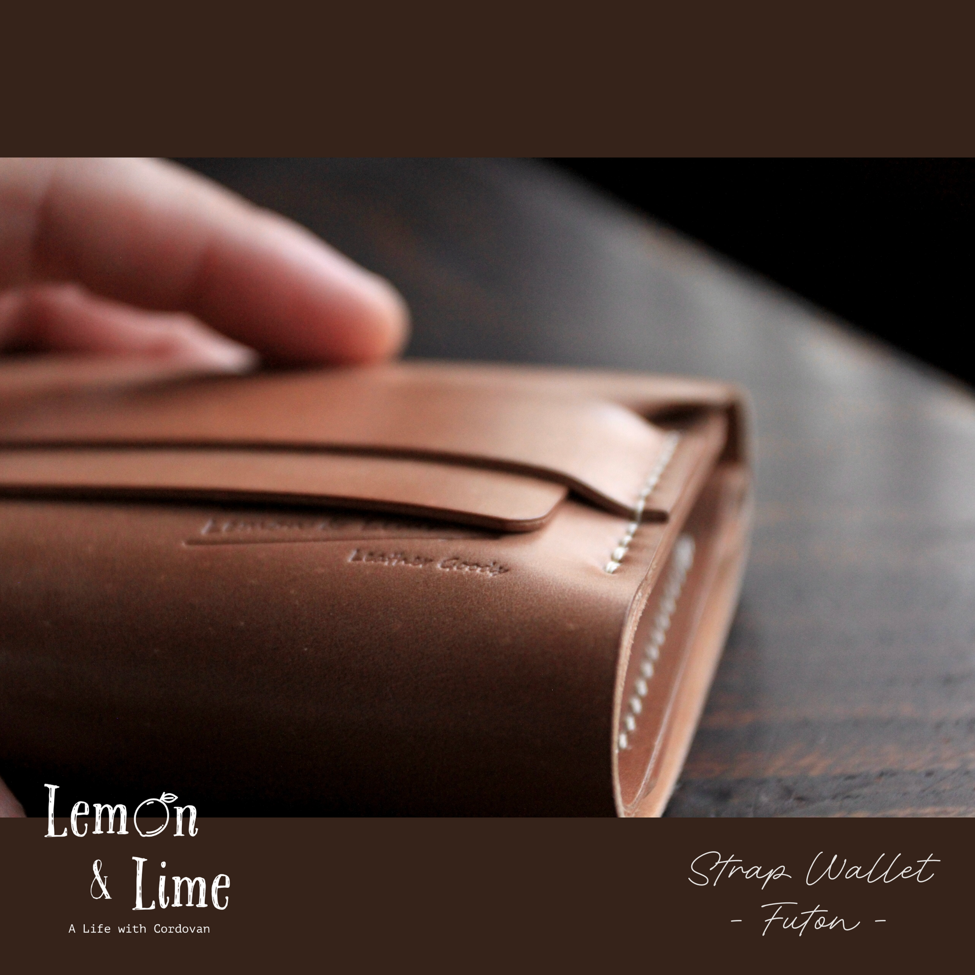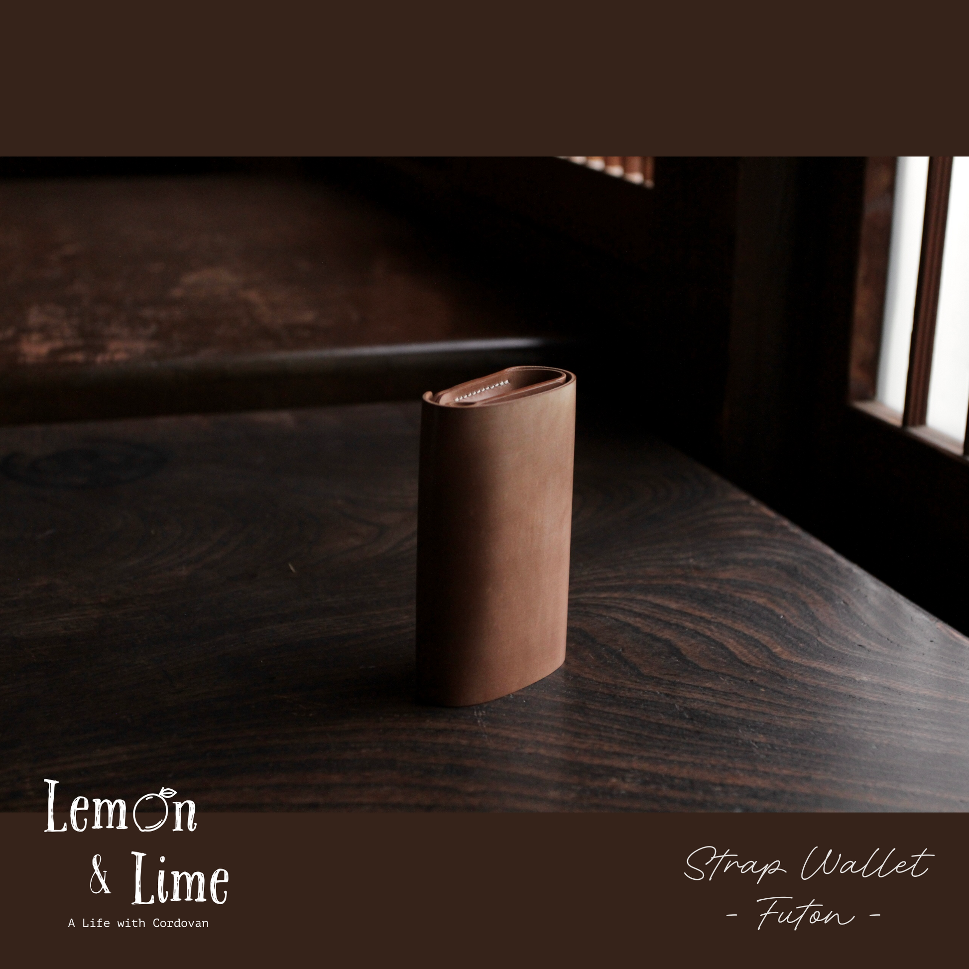 Horweenシェルコードバンで作った、フラップで留めるミニマル財布「Futon」です。