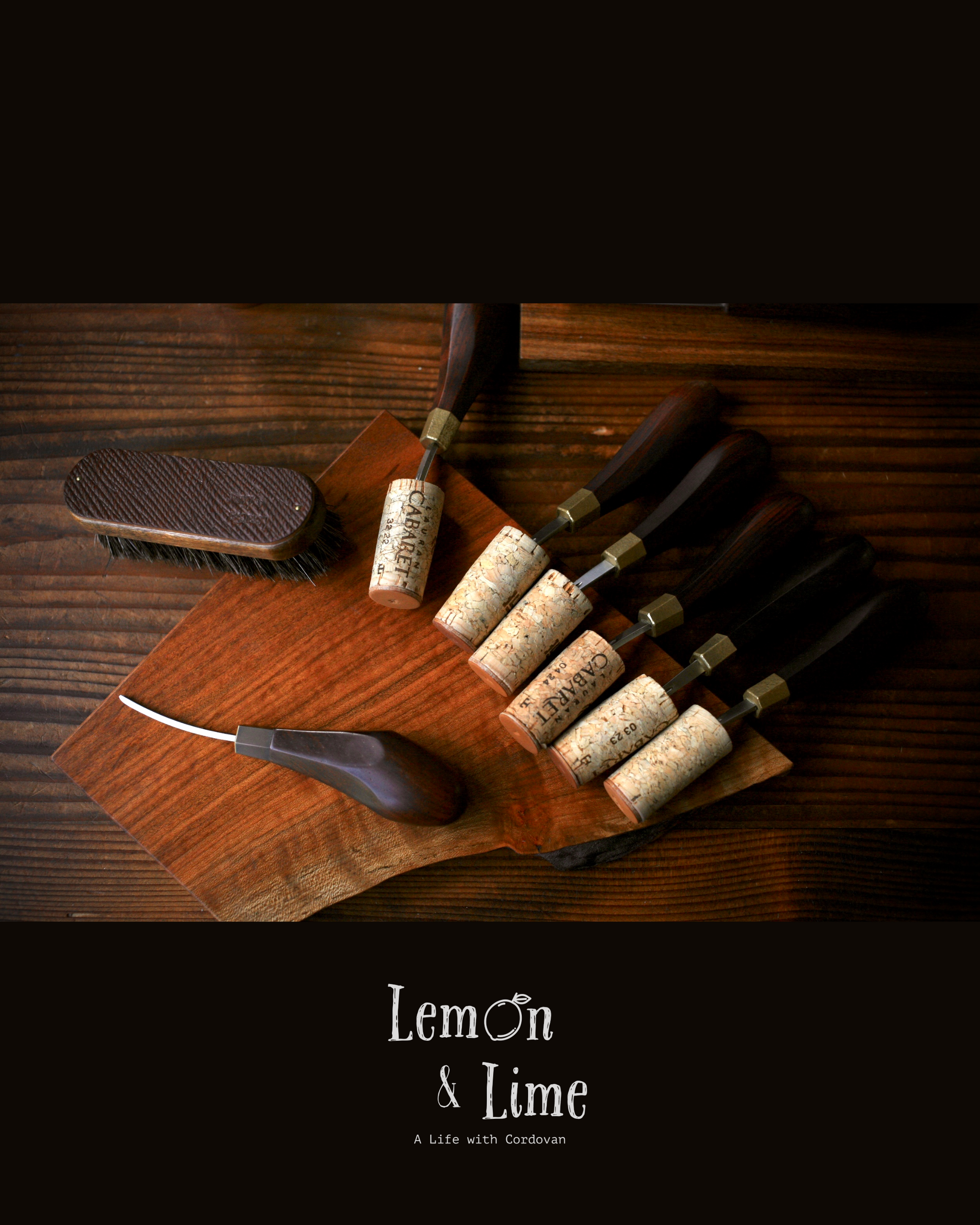 真鍮製フェルールの仕上げには、通常は細かな線状のサテン仕上げですが、今回 atelier Lemon & Lime で取り扱うヘリ落としには全て、オリジナルの「槌目仕上げ」にて製作をしてもらいました。