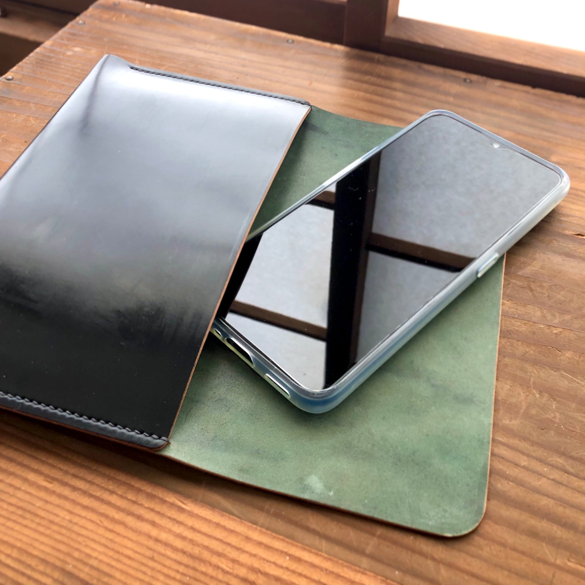 Horweenシェルコードバンで作ったクラッチバッグ (Small) です。