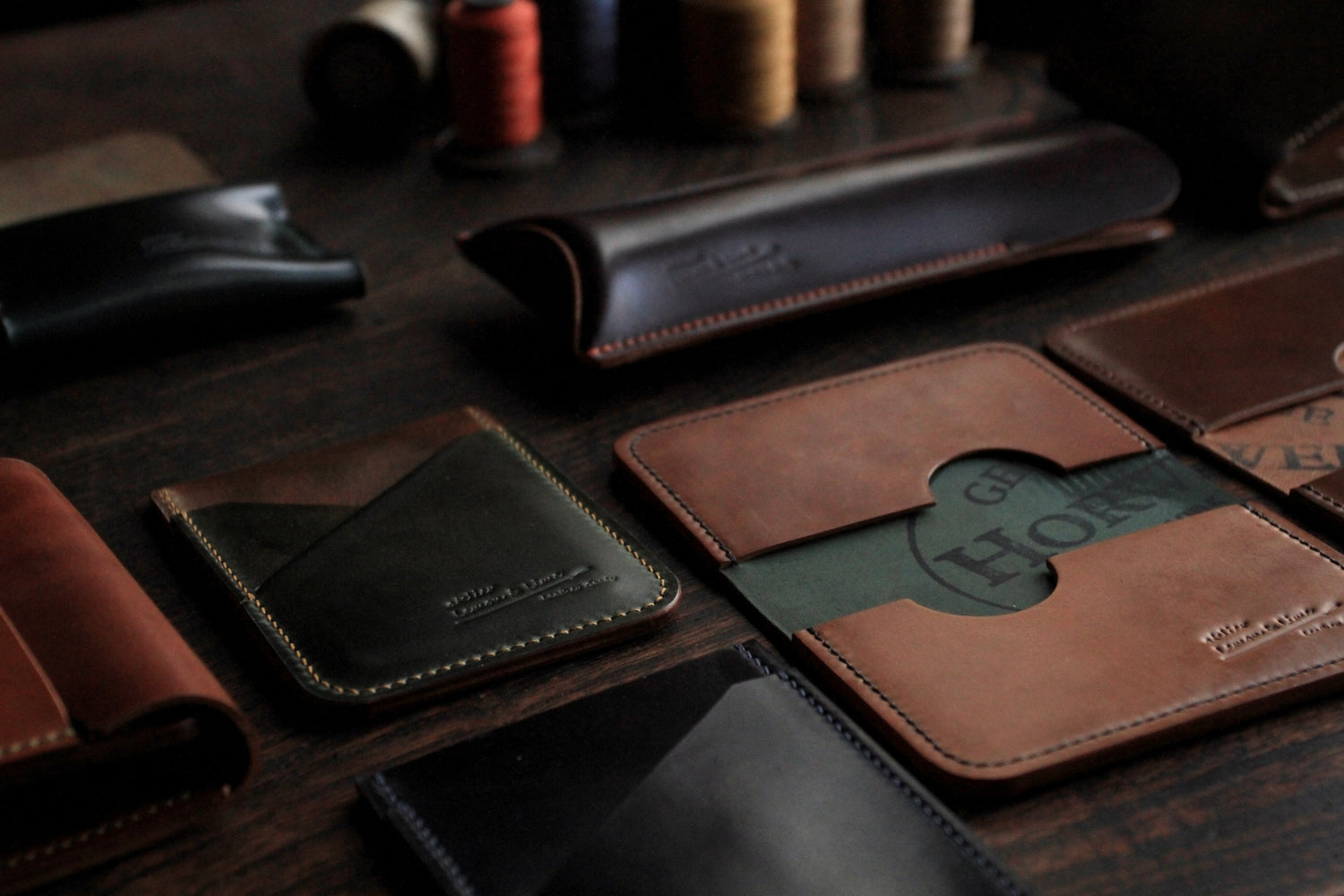 どれも、とても綺麗な色の糸です。ぜひ、好みの糸の色、コードバンとの組み合わせを選んでみてください!