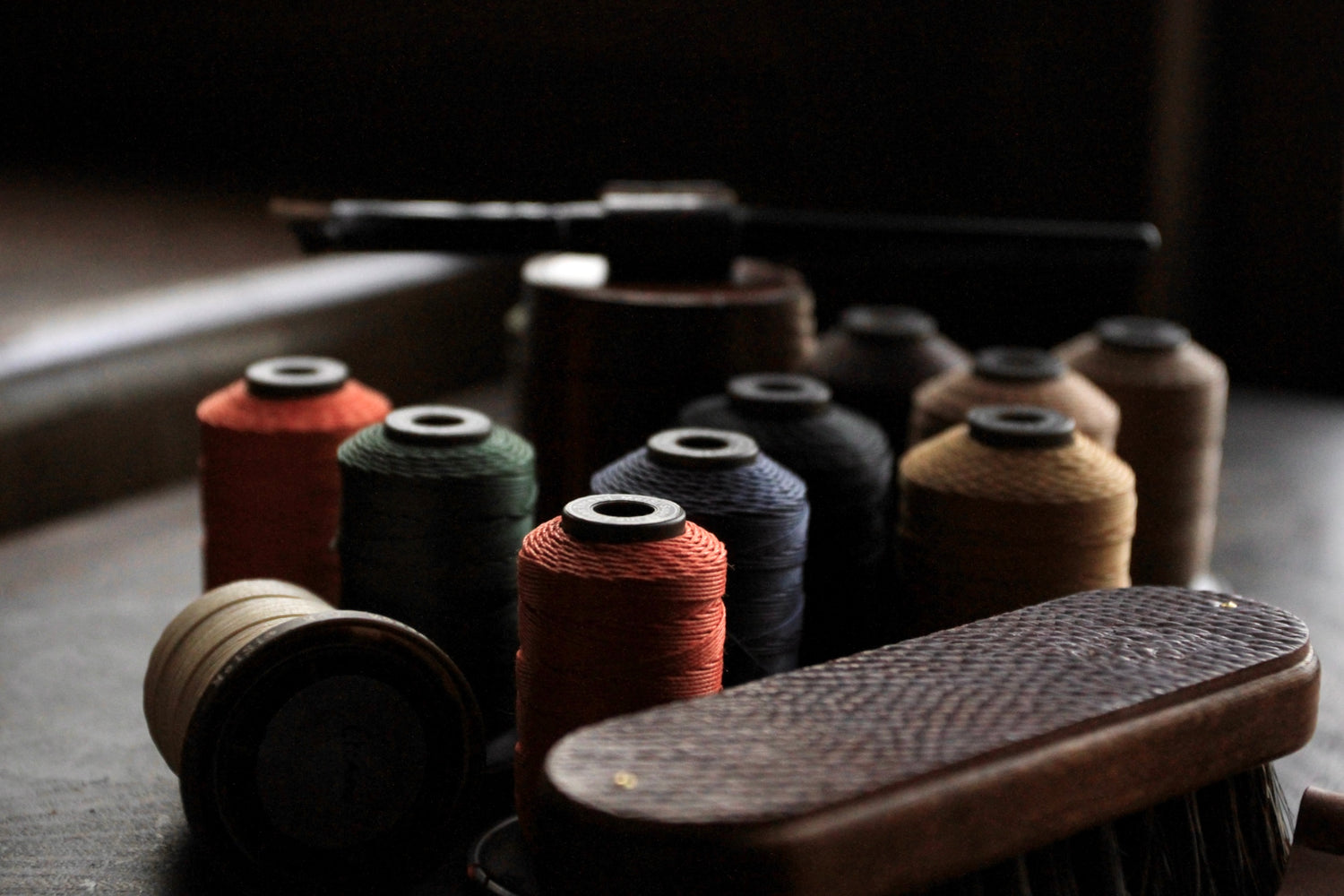 革のお手入れとともに、革の色やクリームの色が少しずつ糸に移っていきます。また同じように、糸がそのものがクリームや革の油分を含んでいくことで、革の屈曲に合わせて糸も伸び縮みを繰り返します。