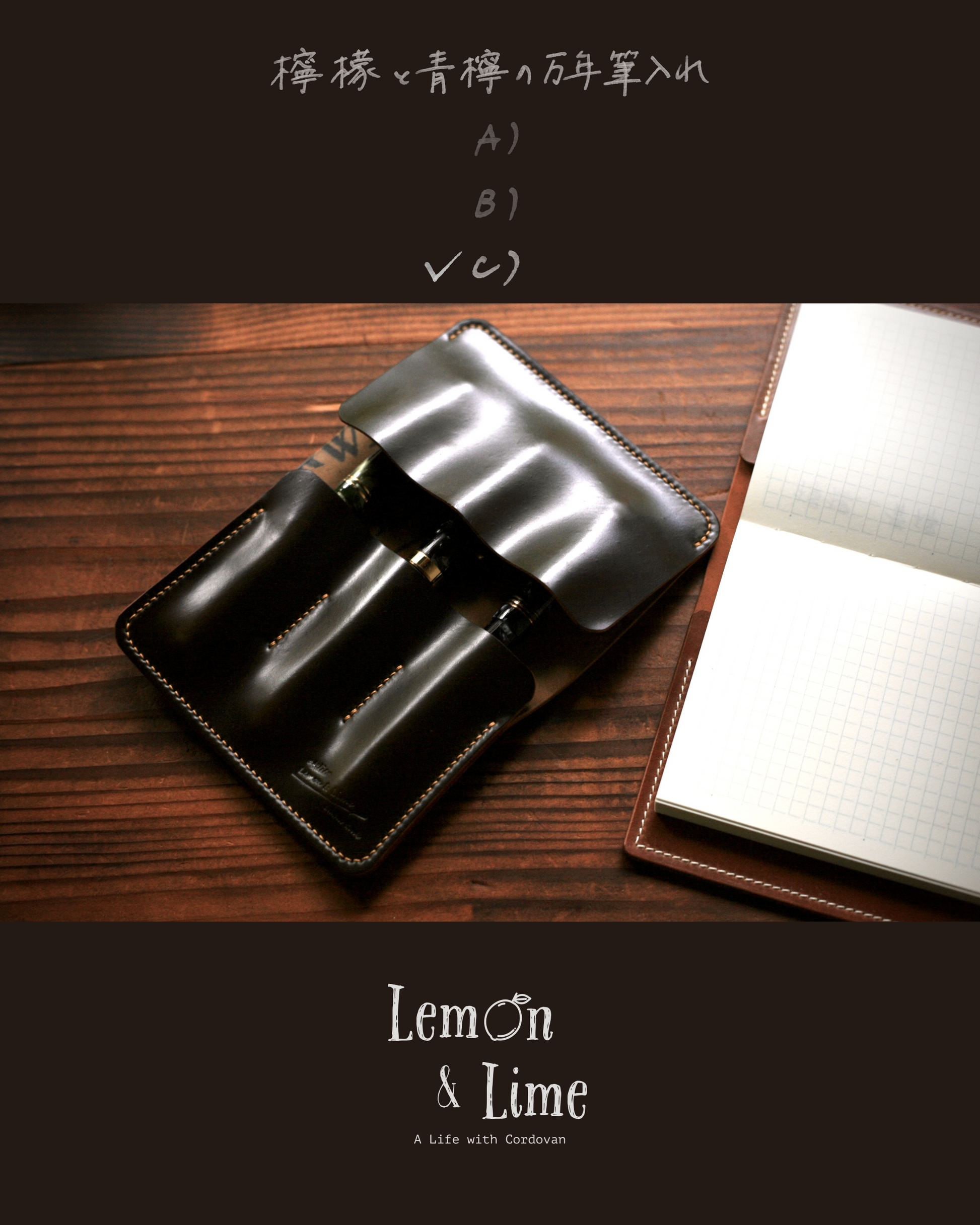 Horweenシェルコードバンでつくった万年筆入れです。